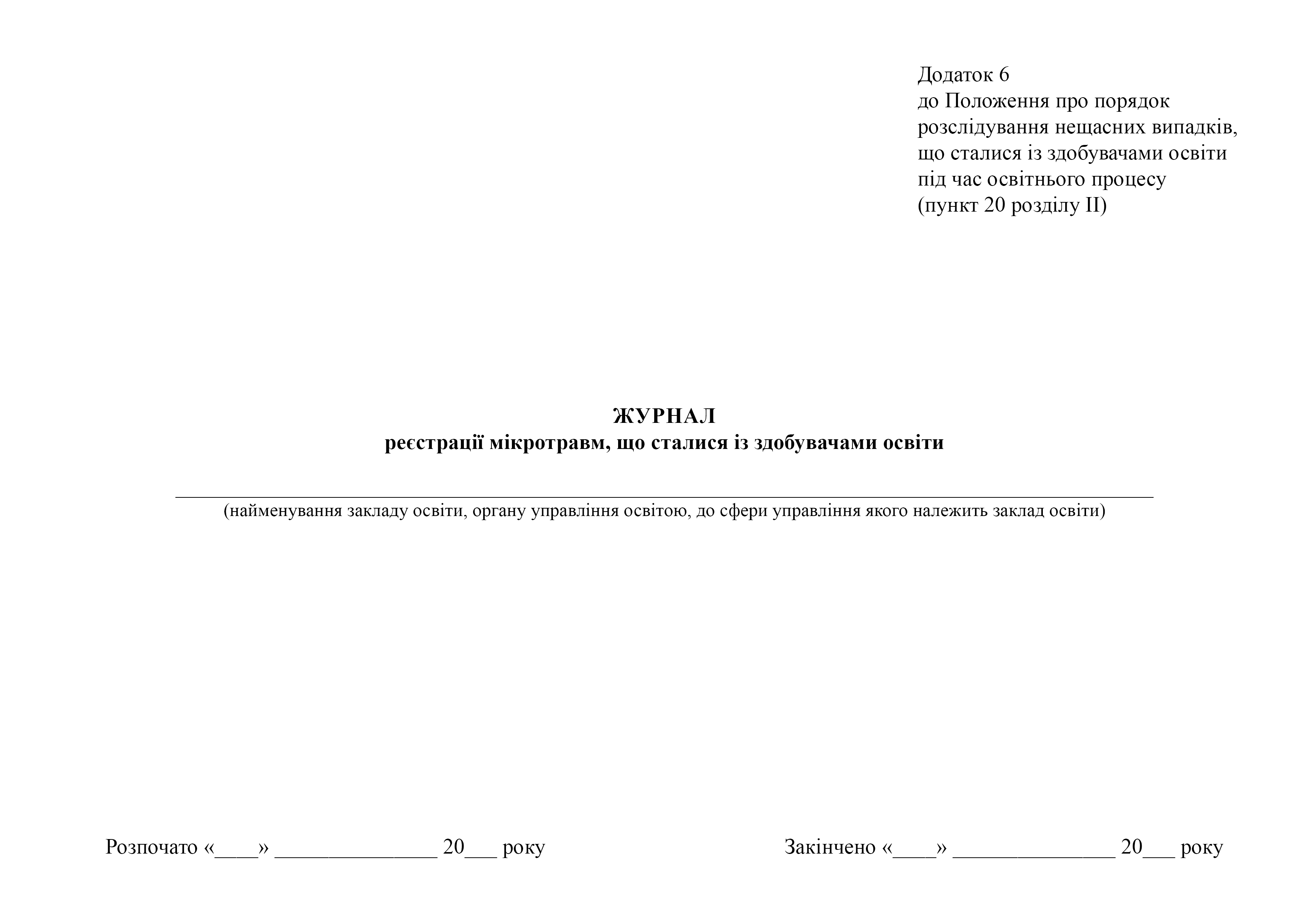Журнал регистрации микротравм, которые произошли с соискателями образования.
