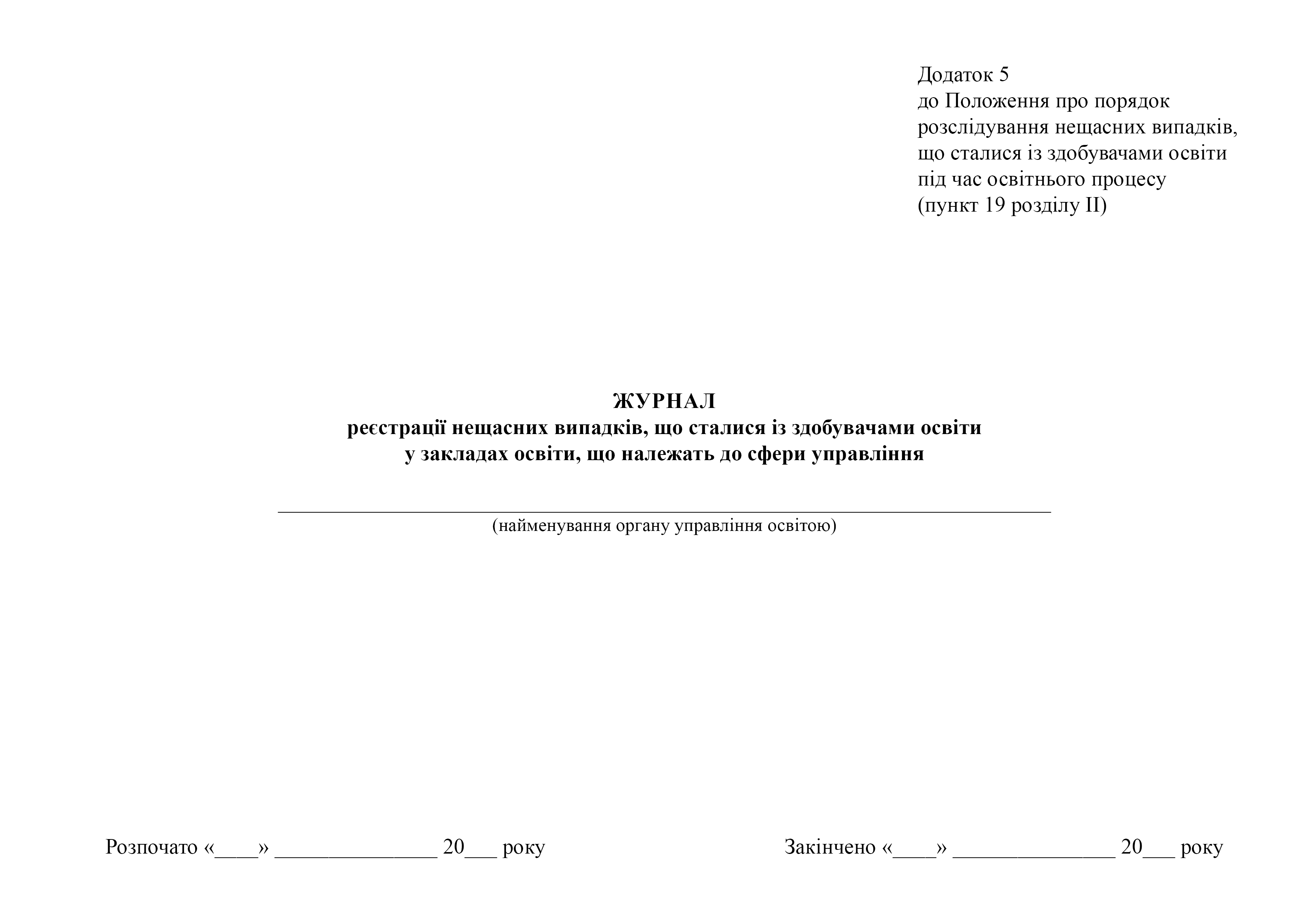 Журнал регистрации несчастных случаев, которые произошли с соискателями образования в учебных заведениях, относящихся к сфере управления.