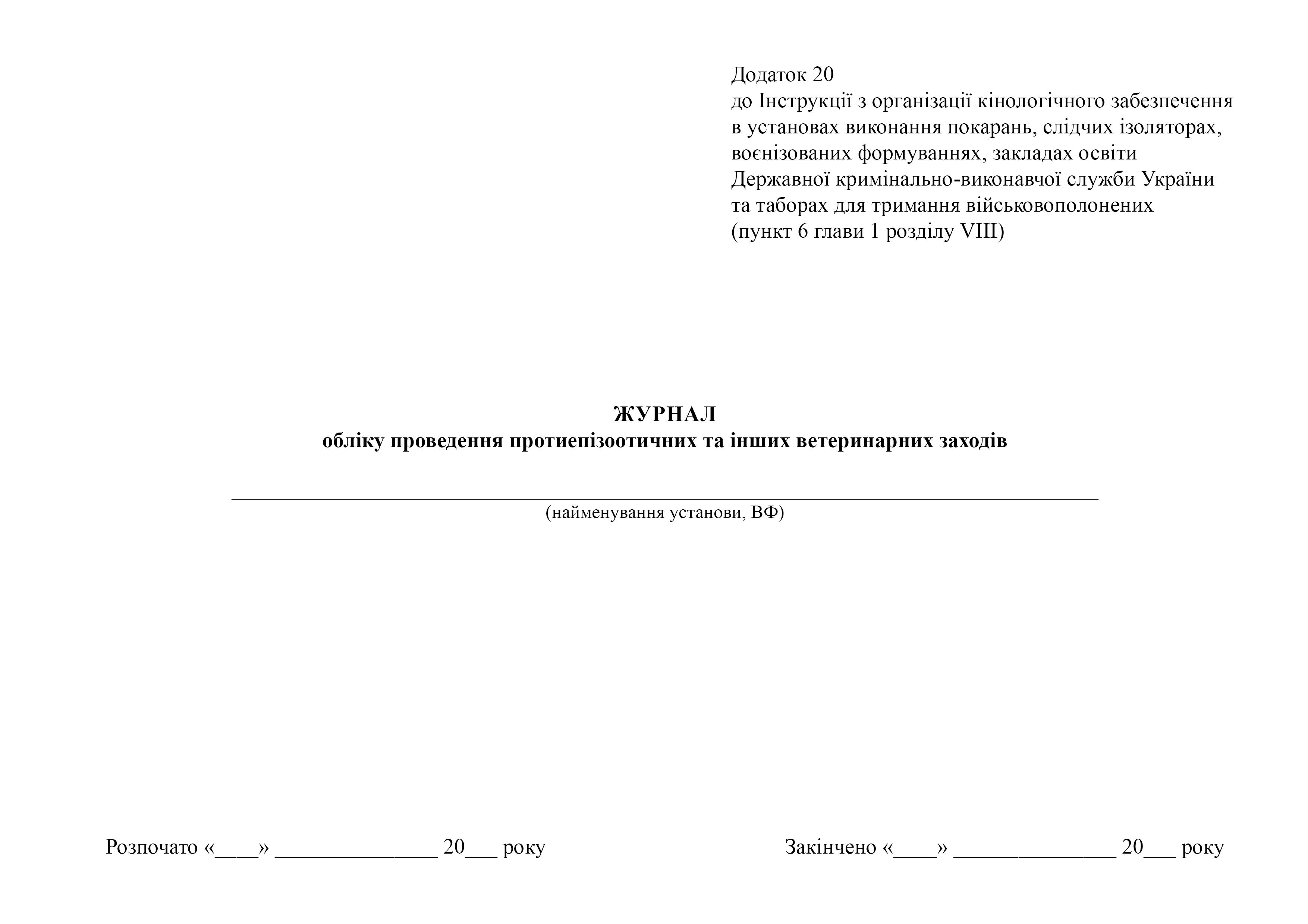 Журнал учета проведения противоэпизоотических и других ветеринарных мероприятий.