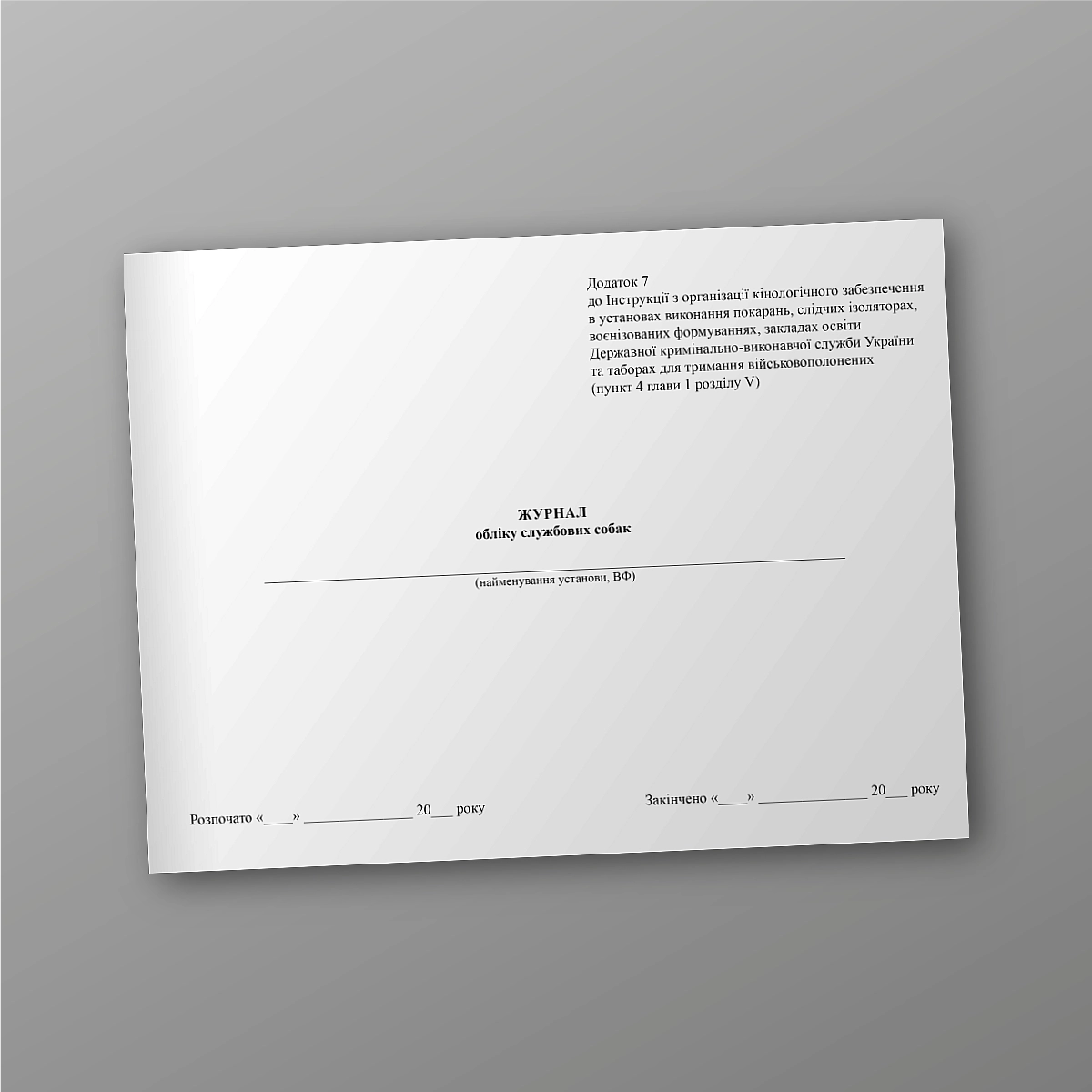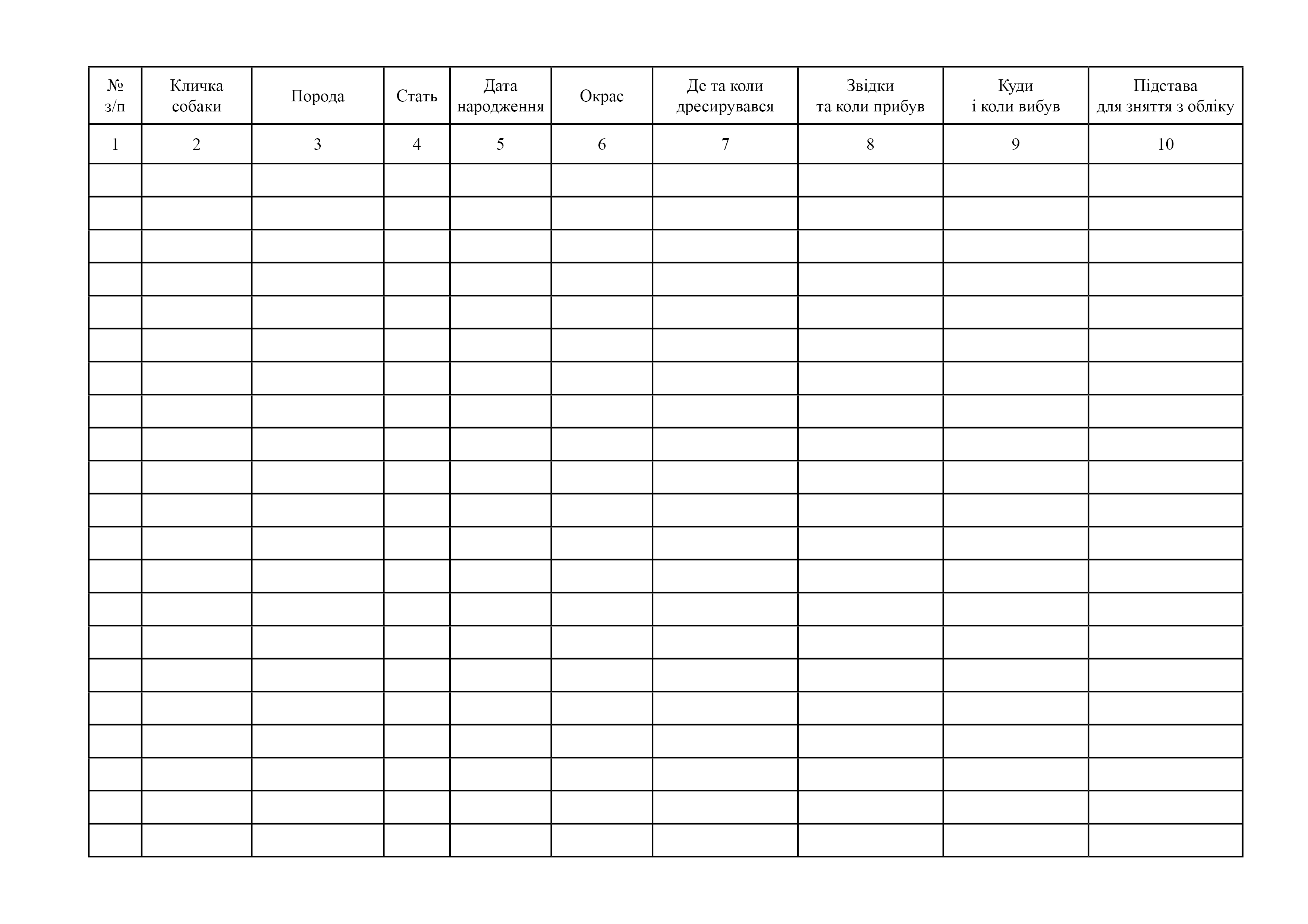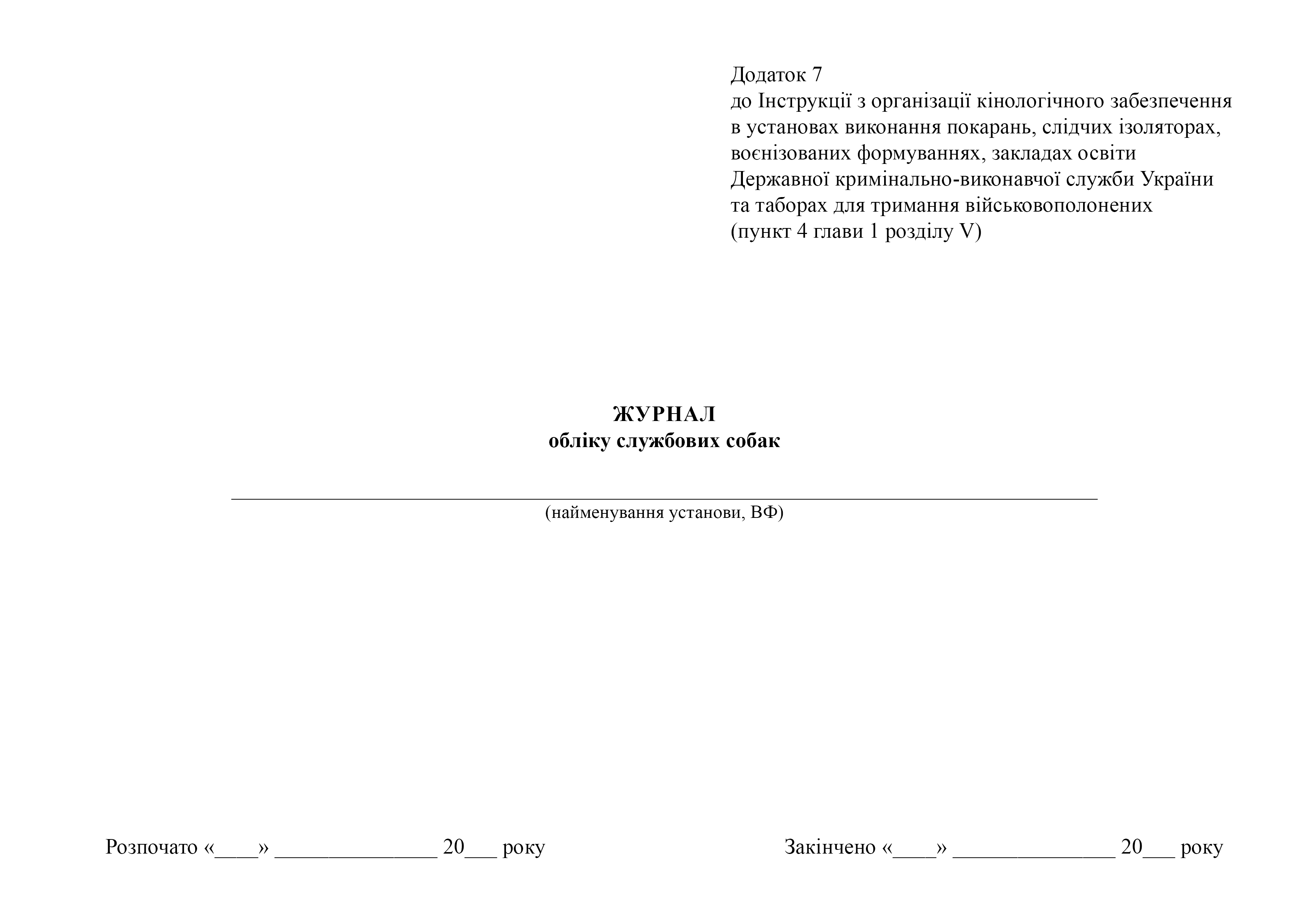 Журнал учета служебных собак.