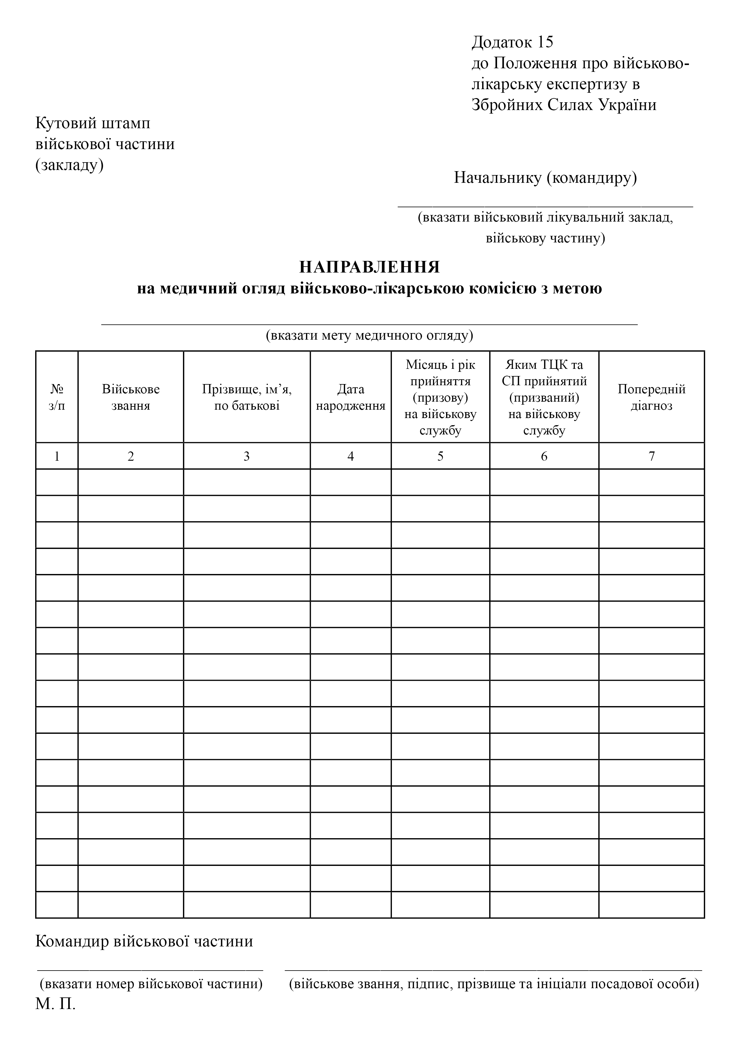 Направление на медицинское осмотр военно-врачебной комиссией.