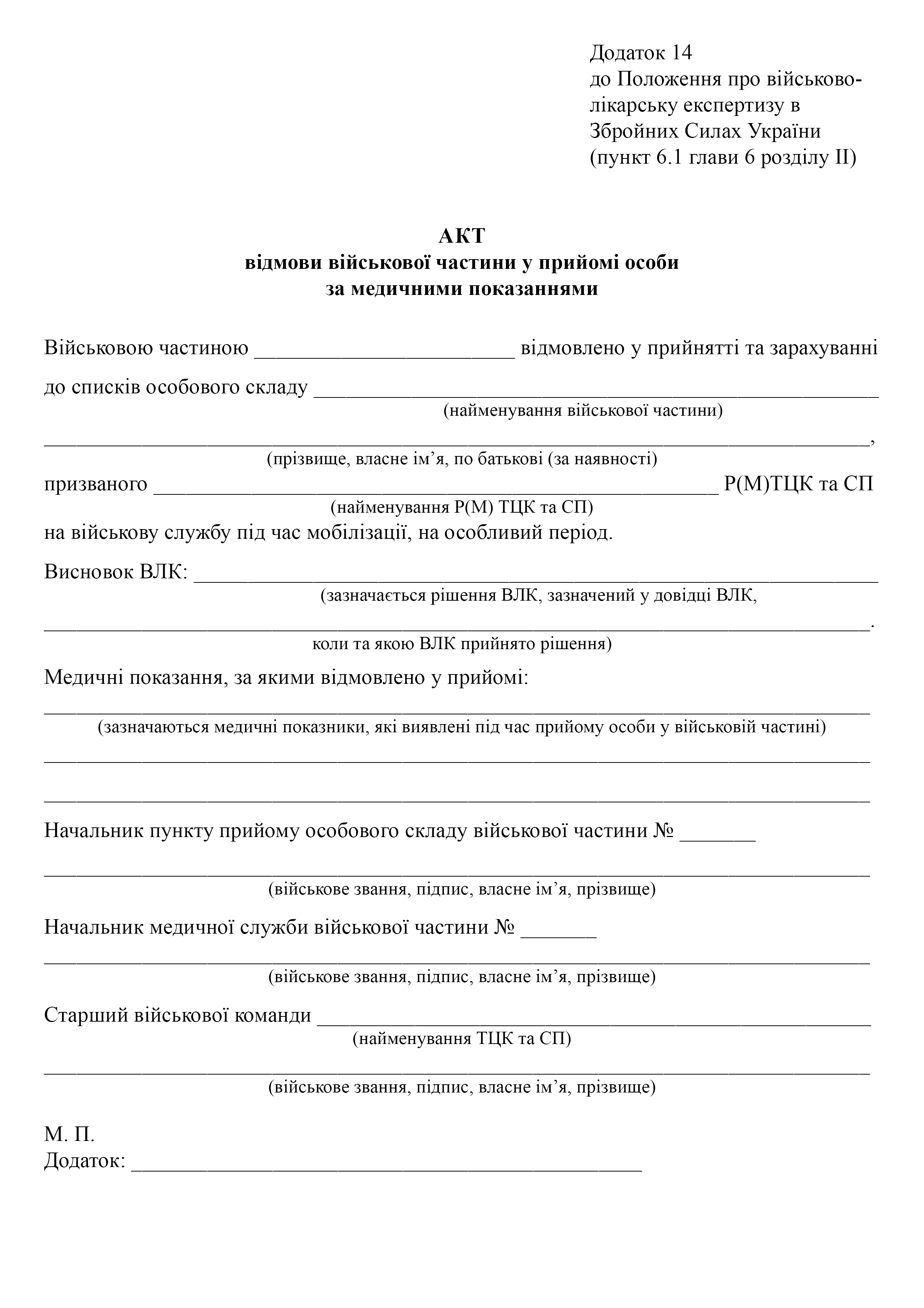 Акт отказа воинской части в приеме лица по медицинским показаниям.