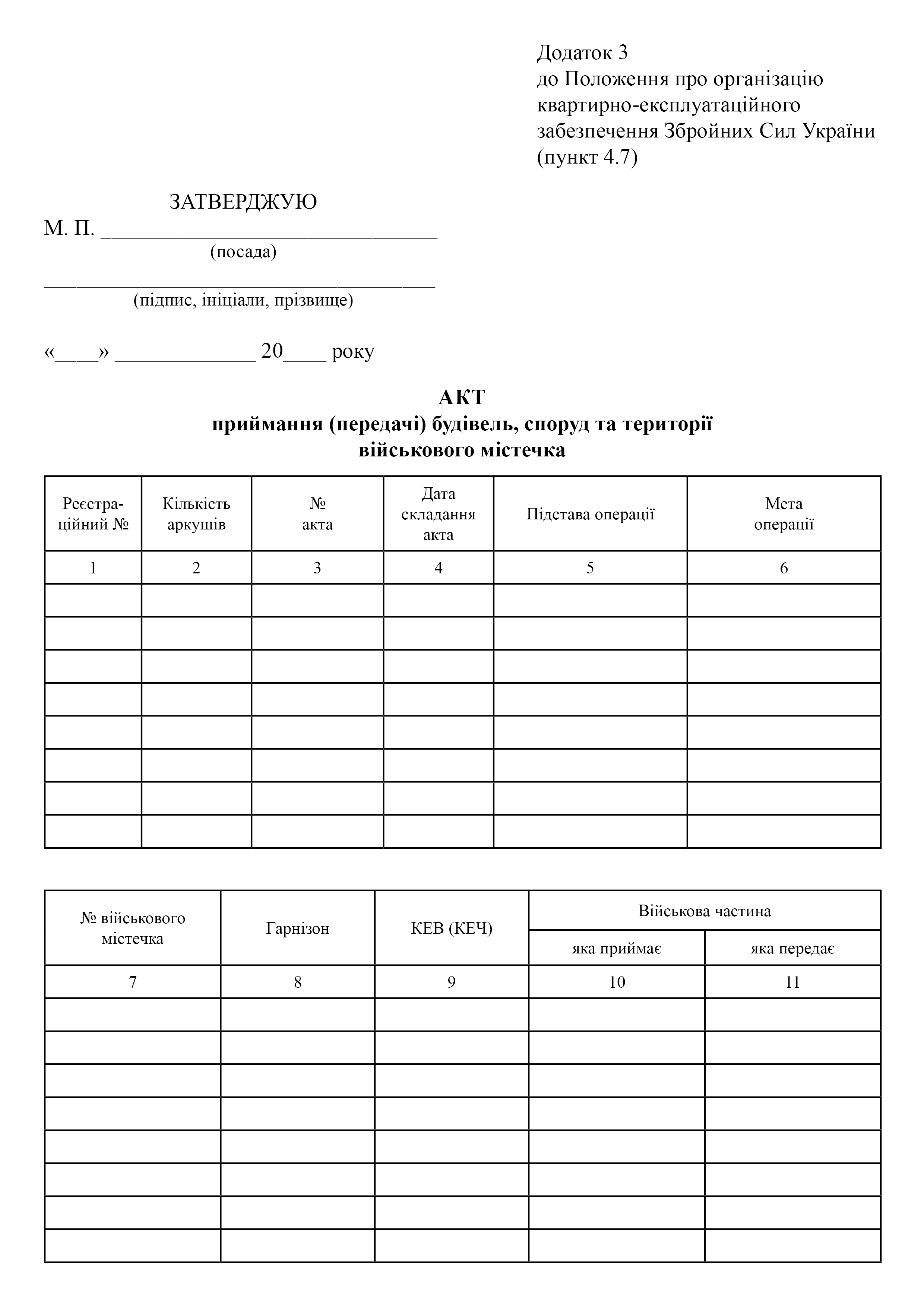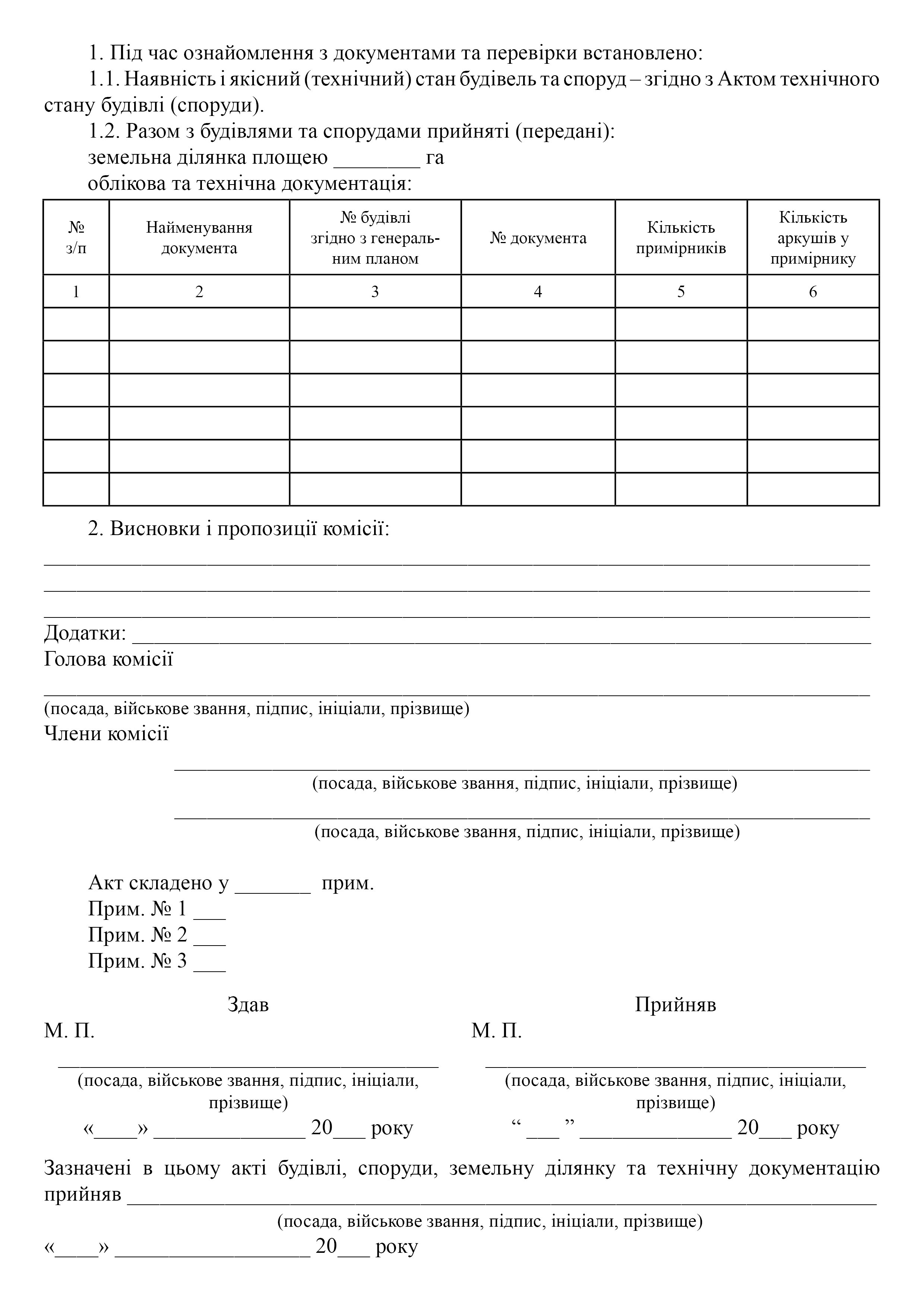 Акт приема (передачи) зданий, сооружений и территории военного городка.