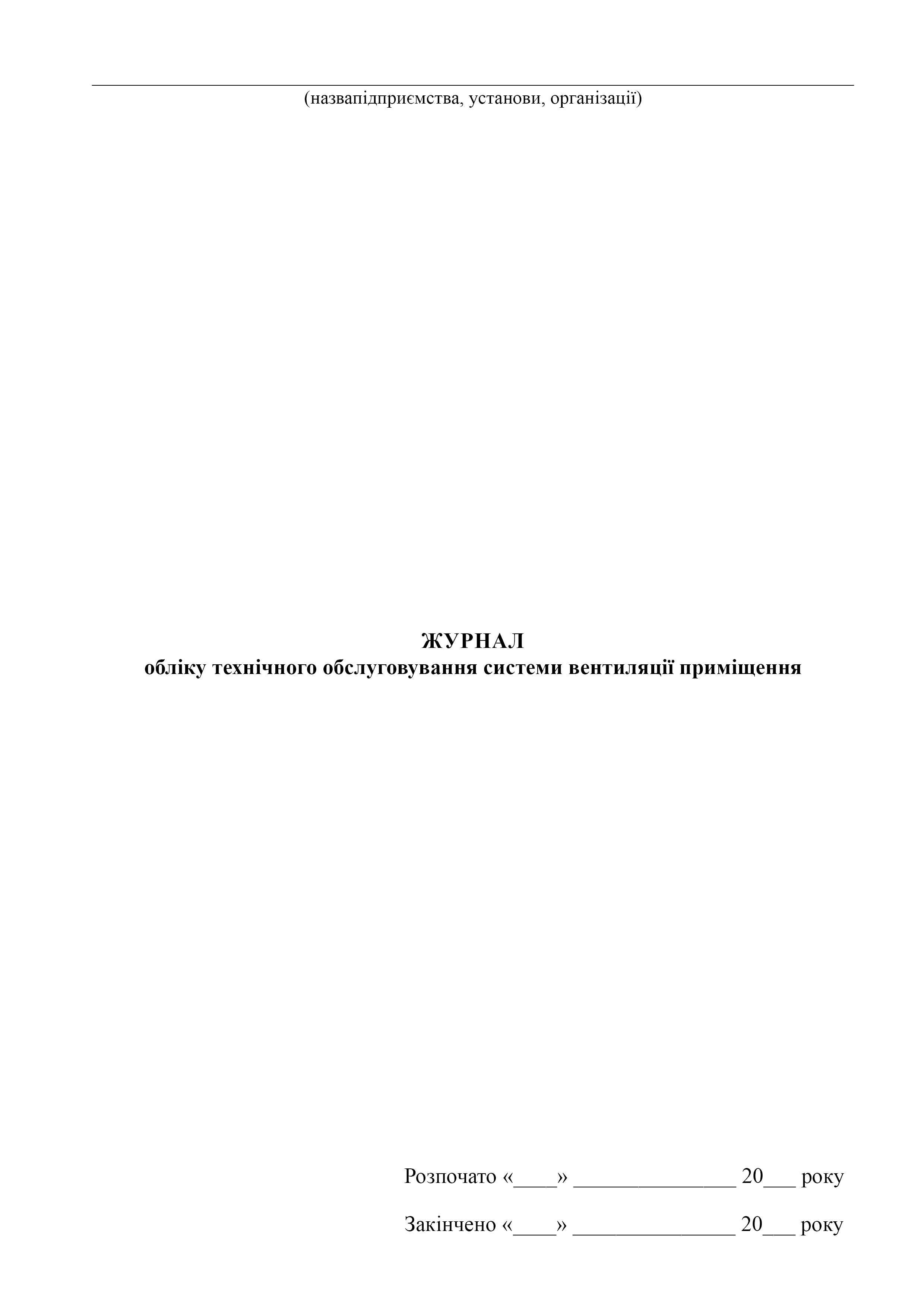 Журнал учета технического обслуживания системы вентиляции помещения.