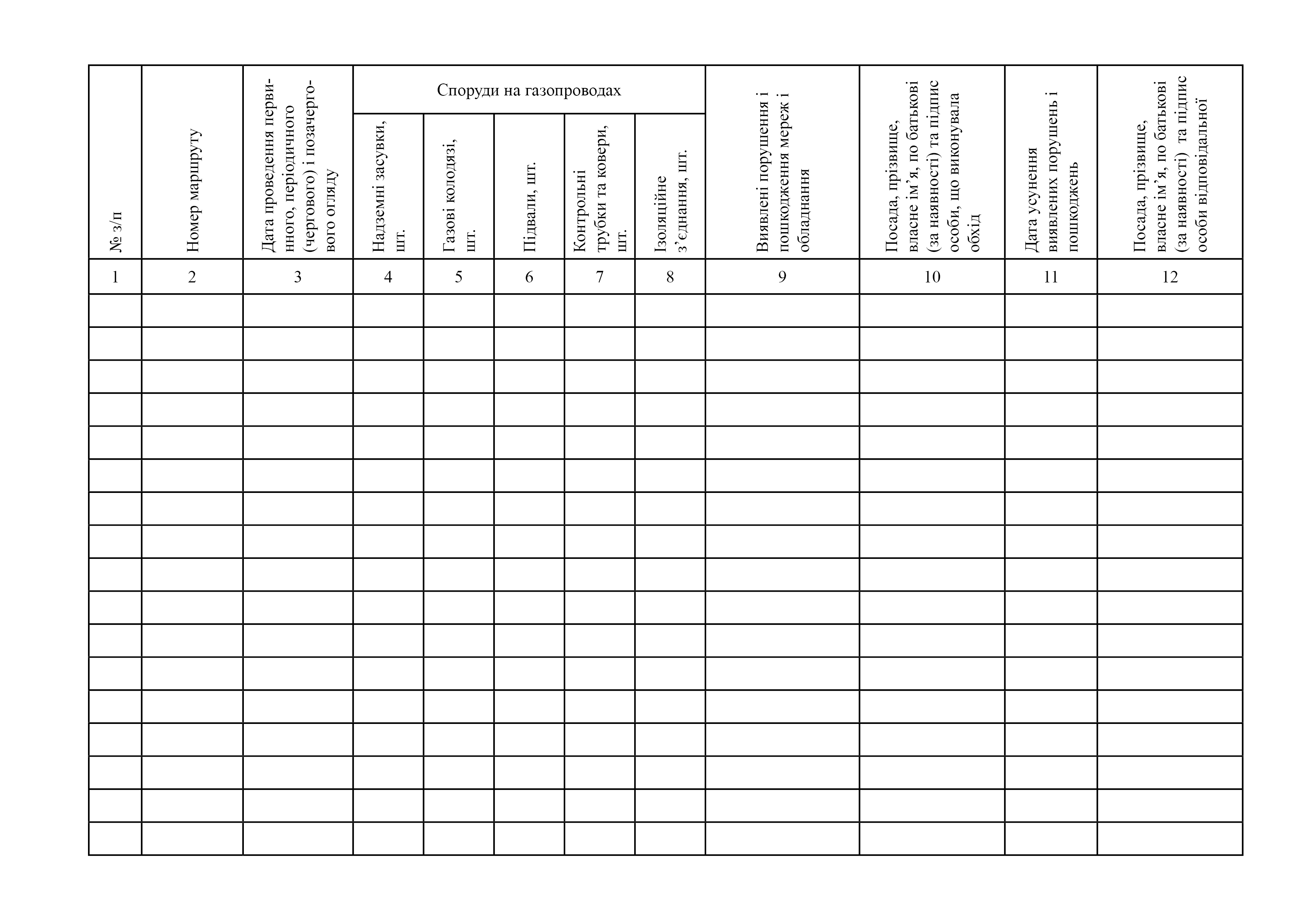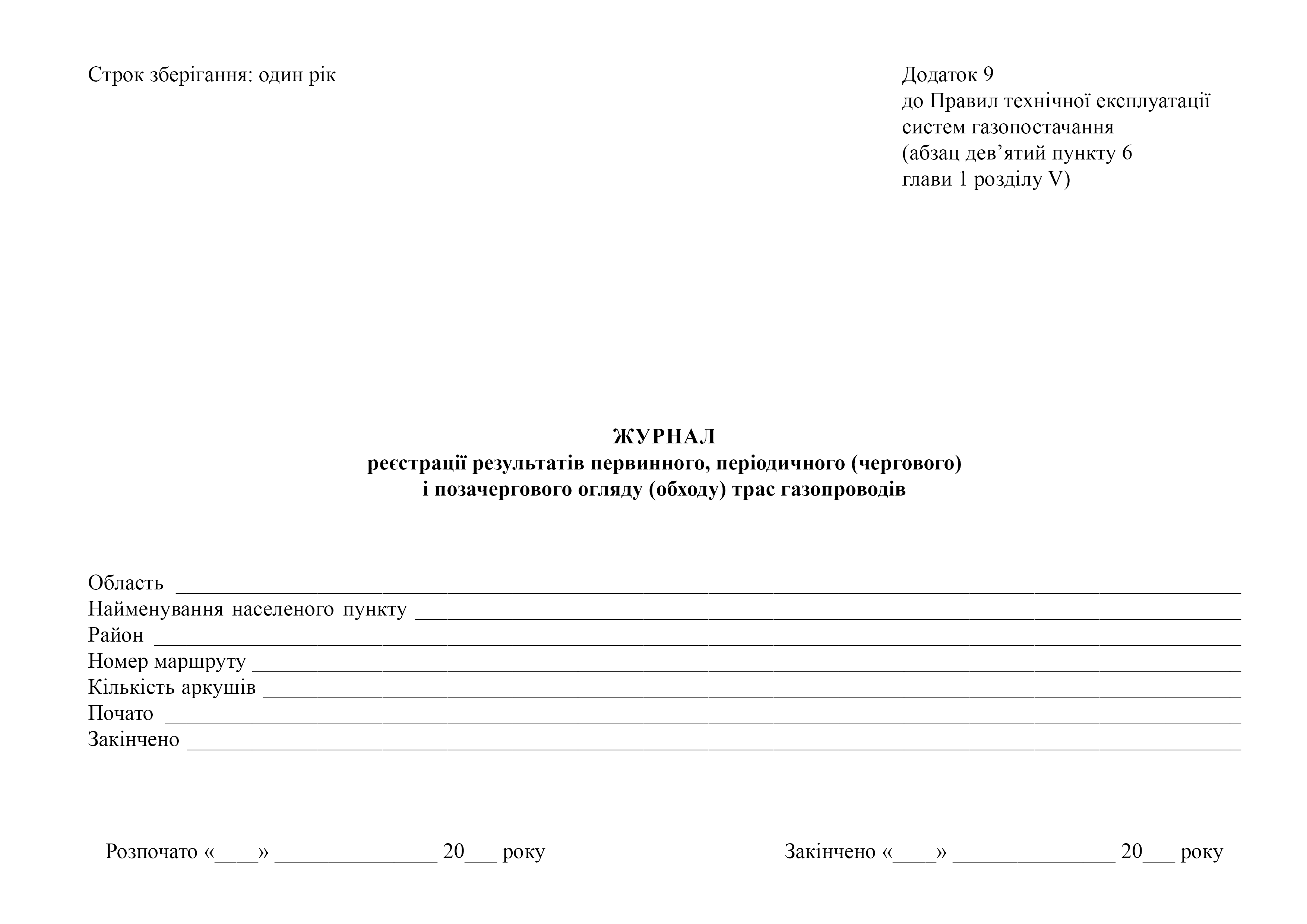 Журнал регистрации результатов первичного, периодического (очередного) и внеочередного осмотра (обхода) трасс газопроводов.