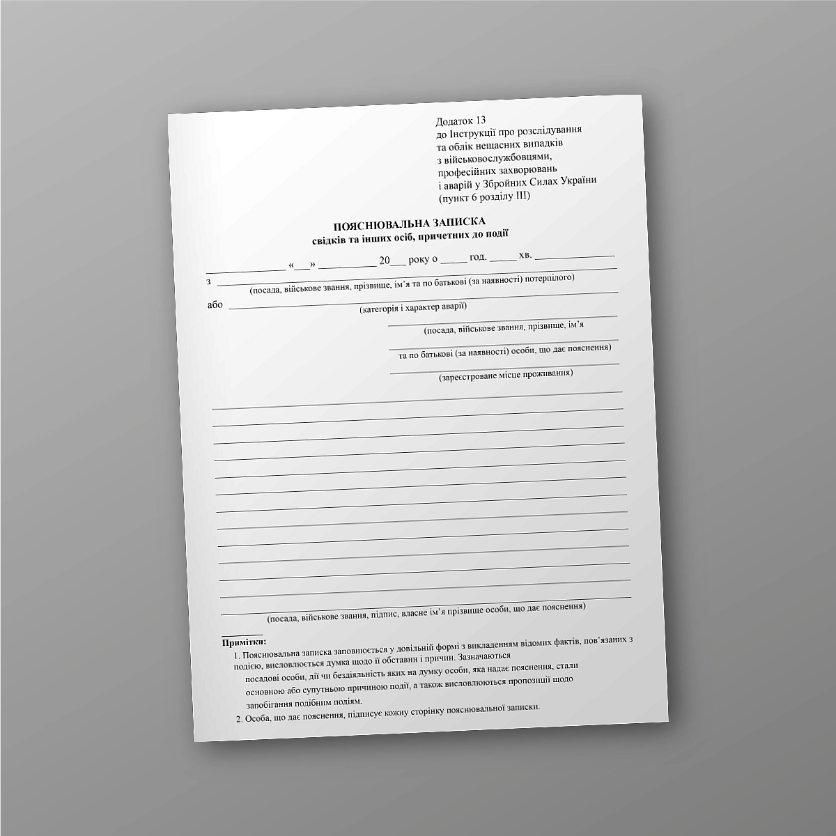 Объяснительная записка свидетелей и других лиц, причастных к событию.