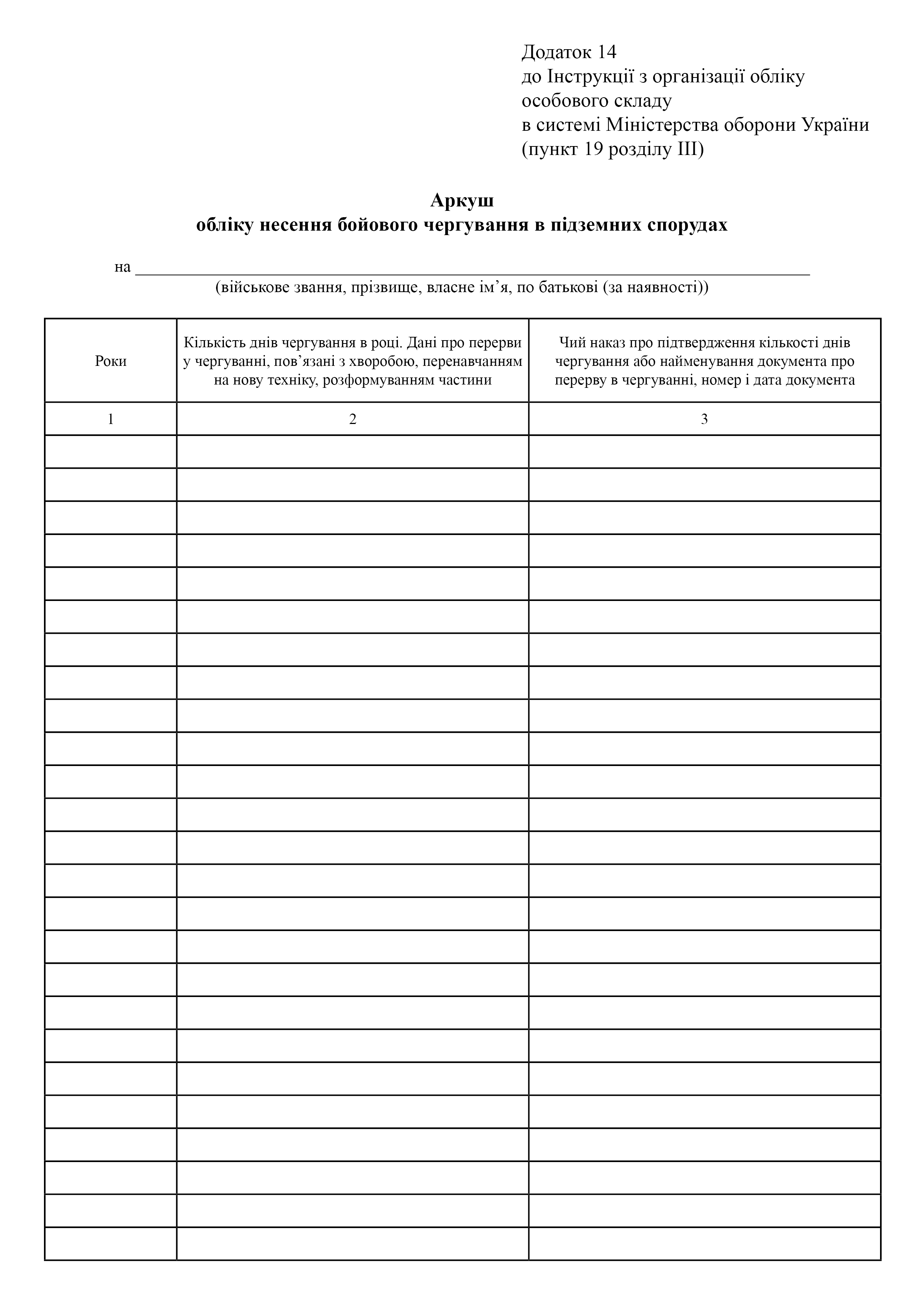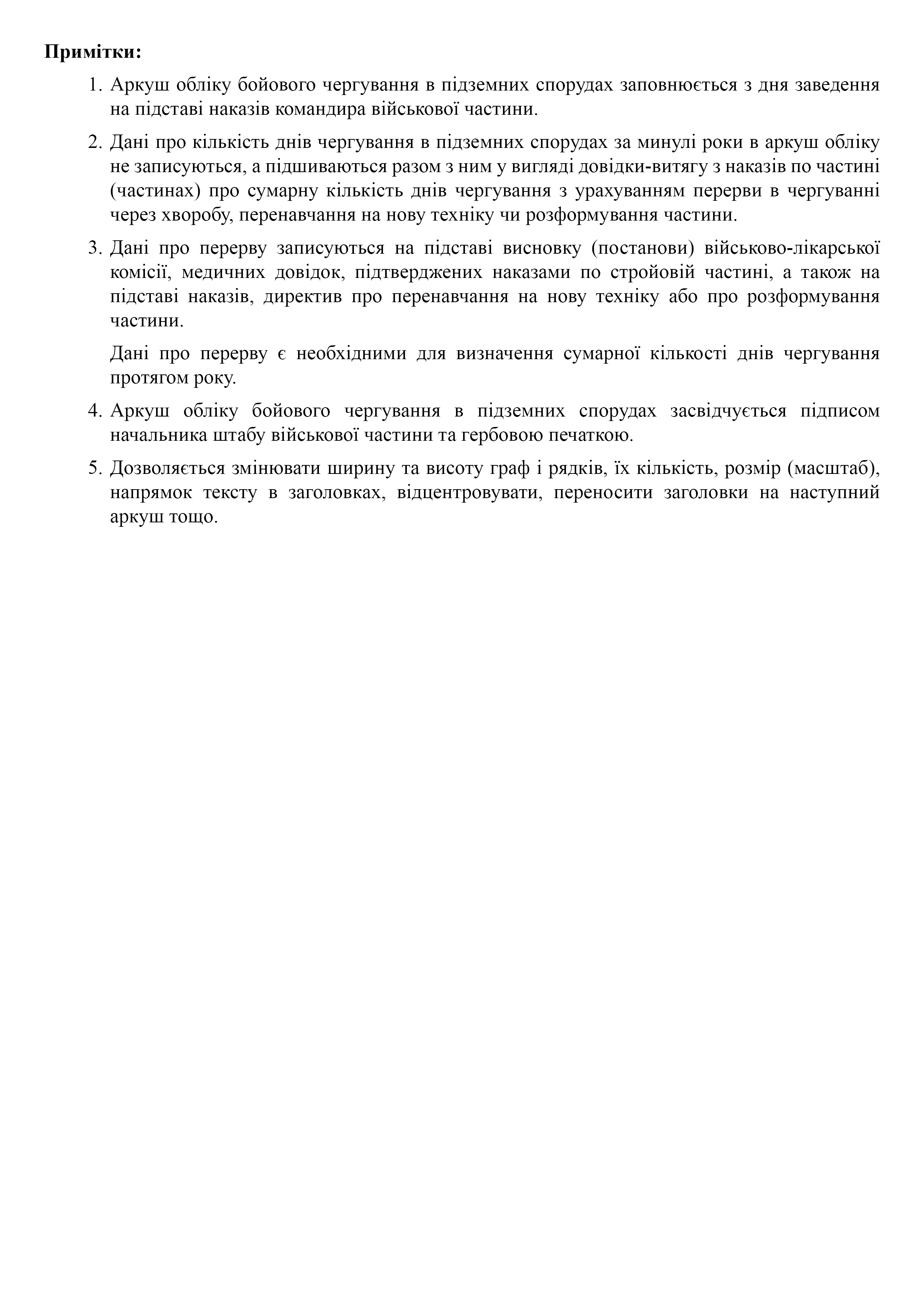 Лист учета несения боевого дежурства в подземных сооружениях.