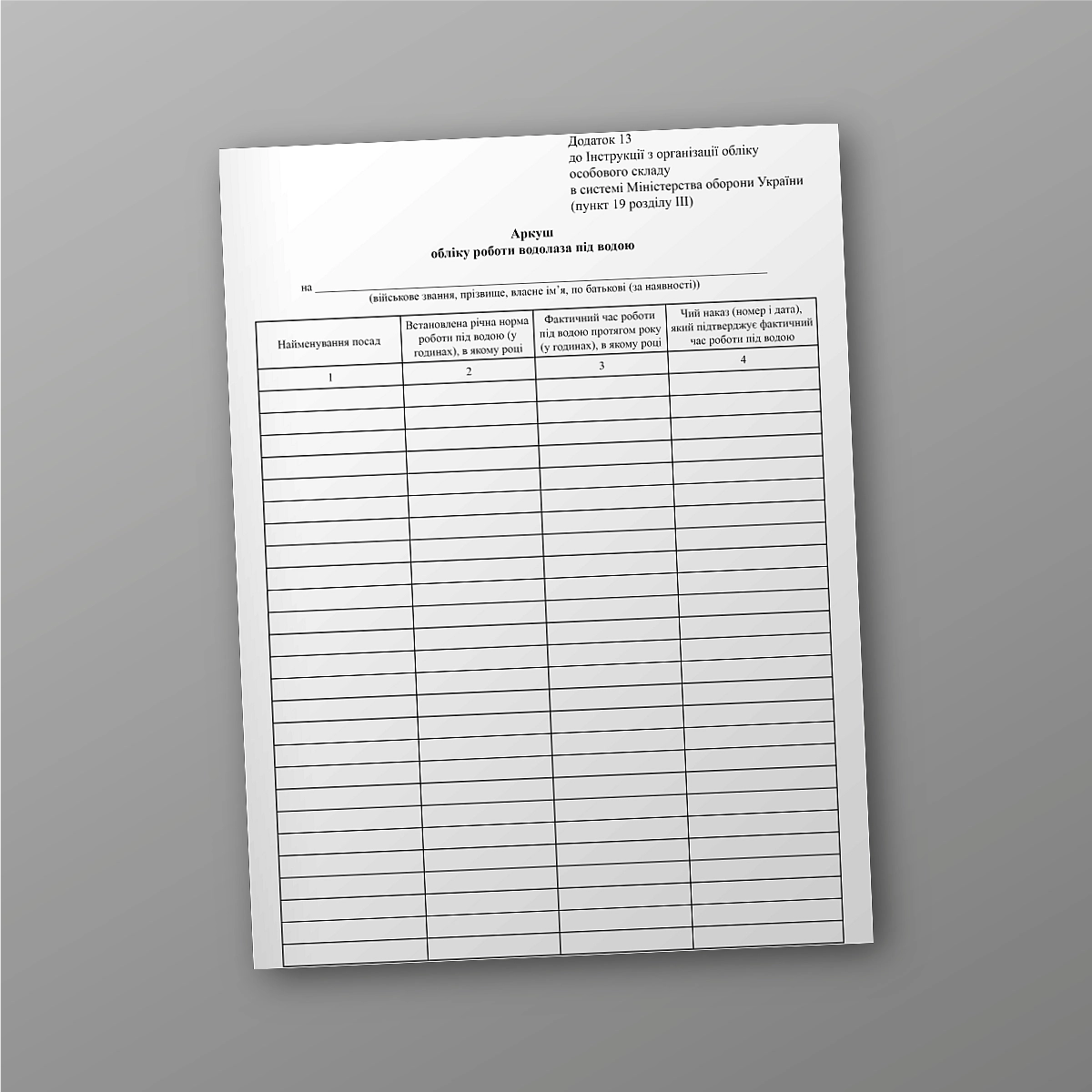 Лист учета работы водолаза под водой.