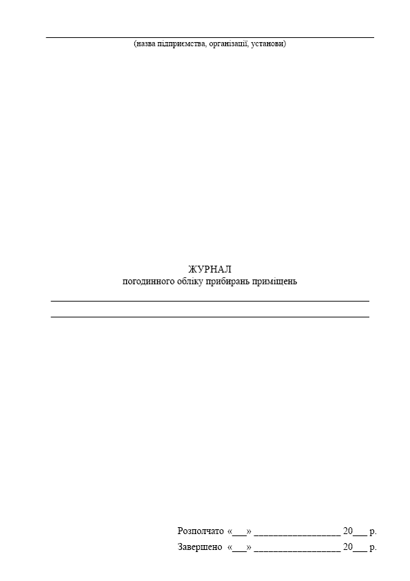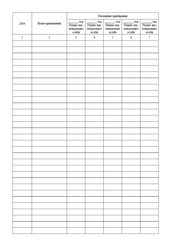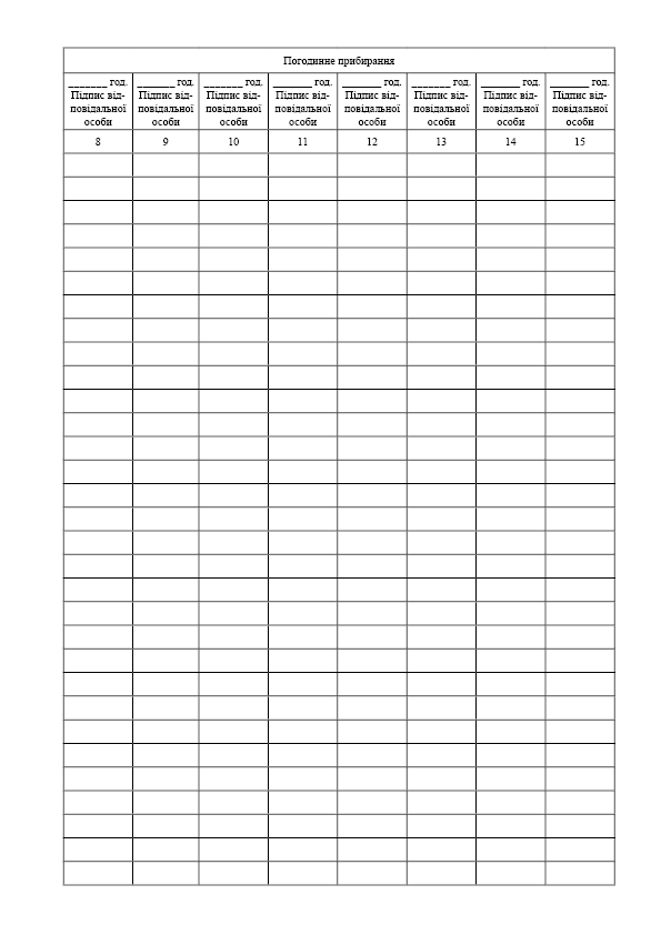 Журнал почасового учета уборок помещений.