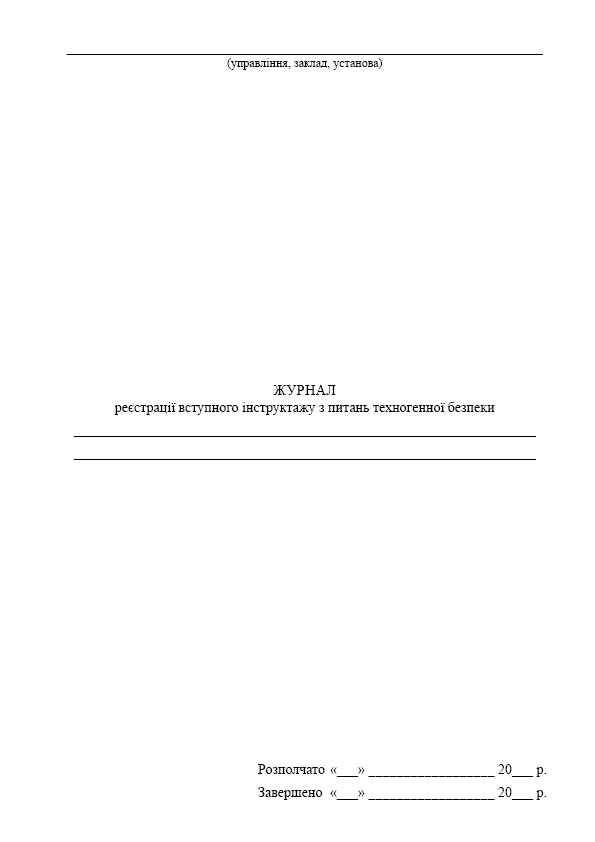 Журнал регистрации вводного инструктажа по вопросам техногенной безопасности.