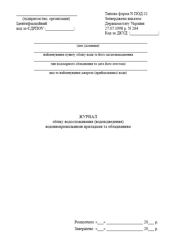 Журнал учета водопотребления (водоотвода) водоизмерительными приборами и оборудованиями.